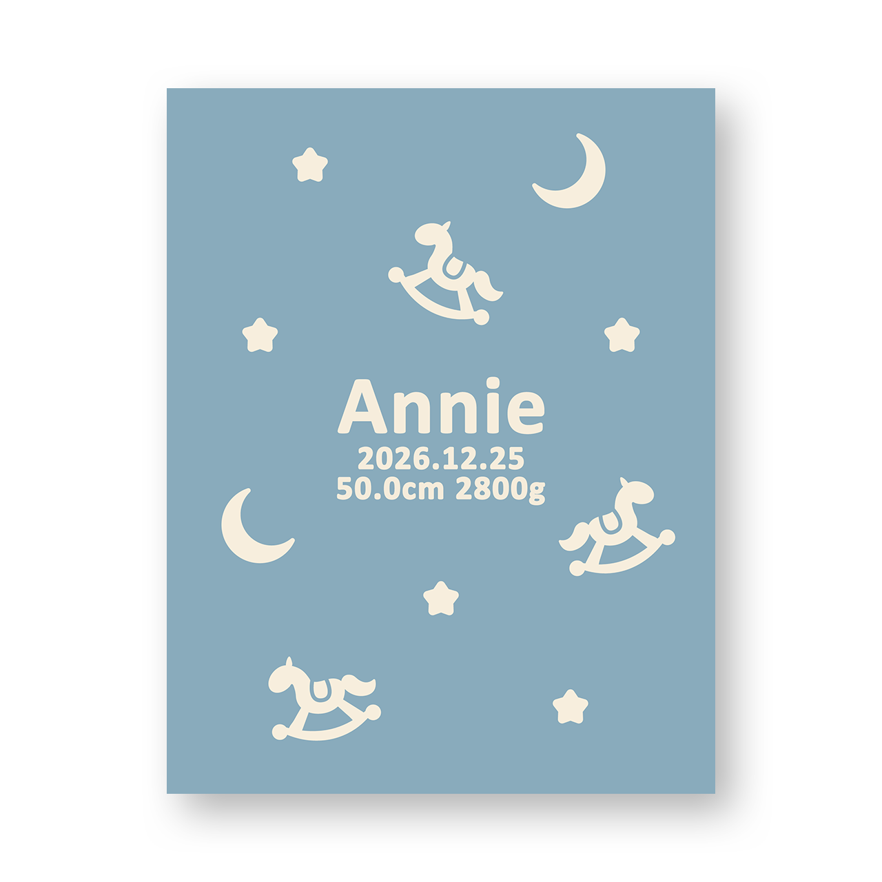 出生体重、出生身長など、その他の文字列をお入れします。「51.3cm 2847g」