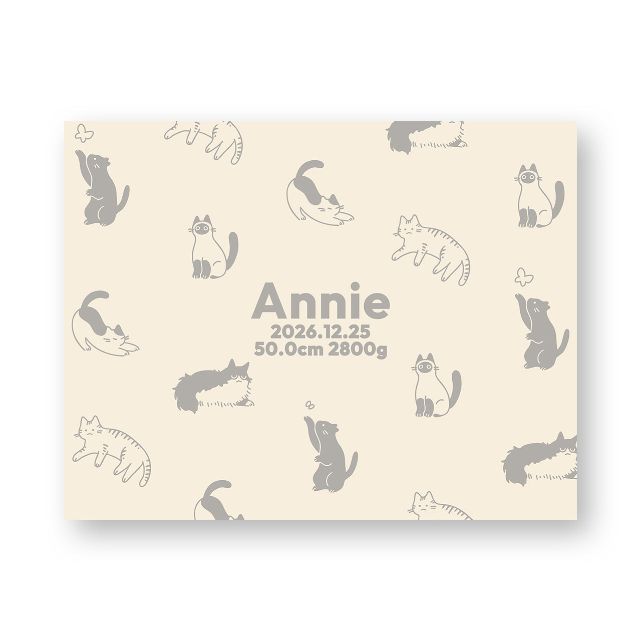 出生体重、出生身長など、その他の文字列をお入れします。「51.3cm 2847g」