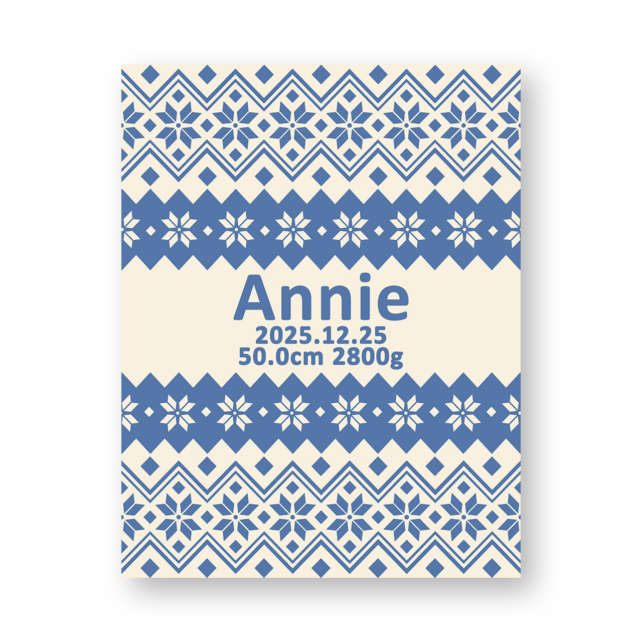 出生体重、出生身長など、その他の文字列をお入れします。「51.3cm 2847g」