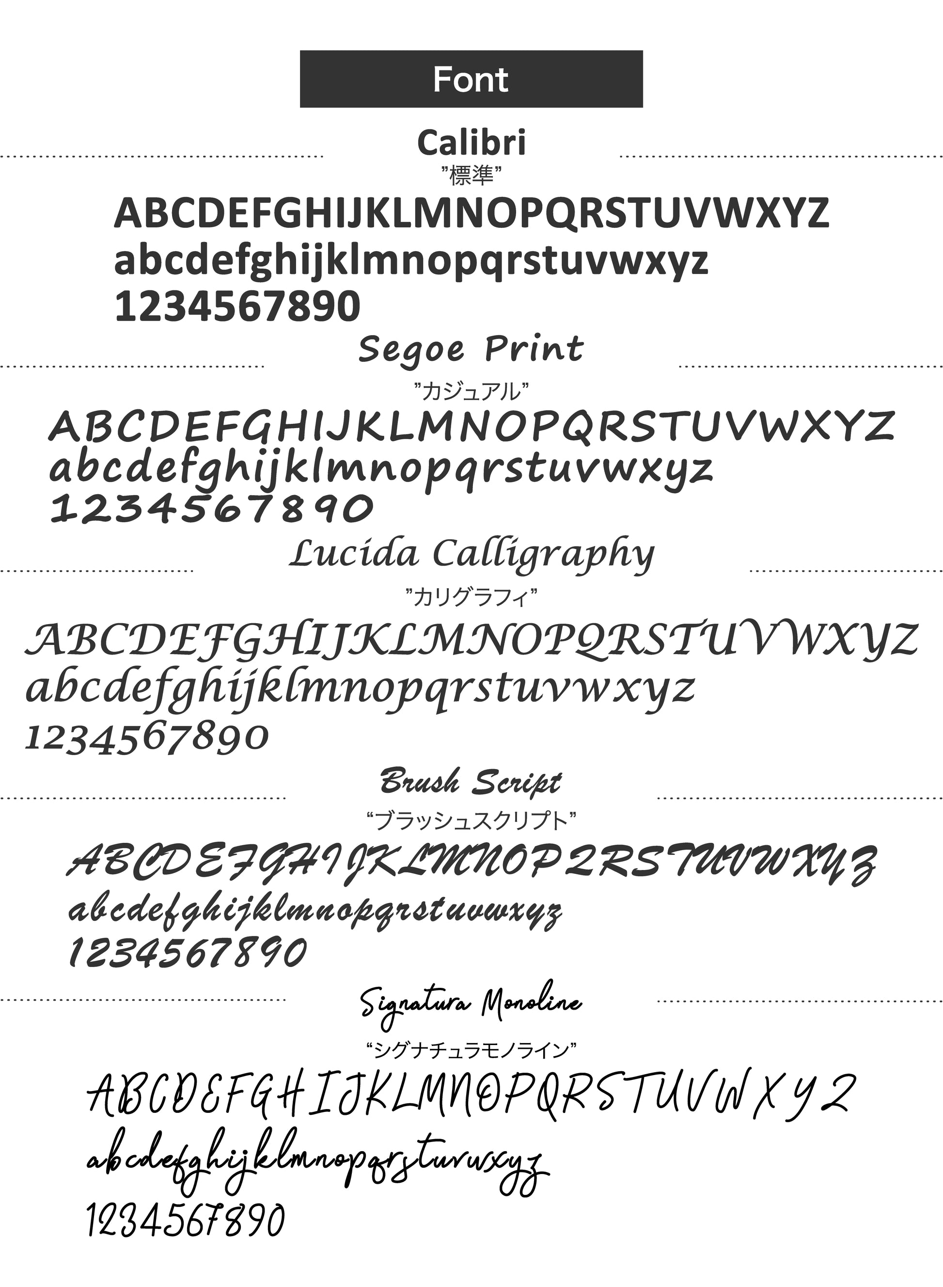 商品画像より5種類のフォントからお選びください。